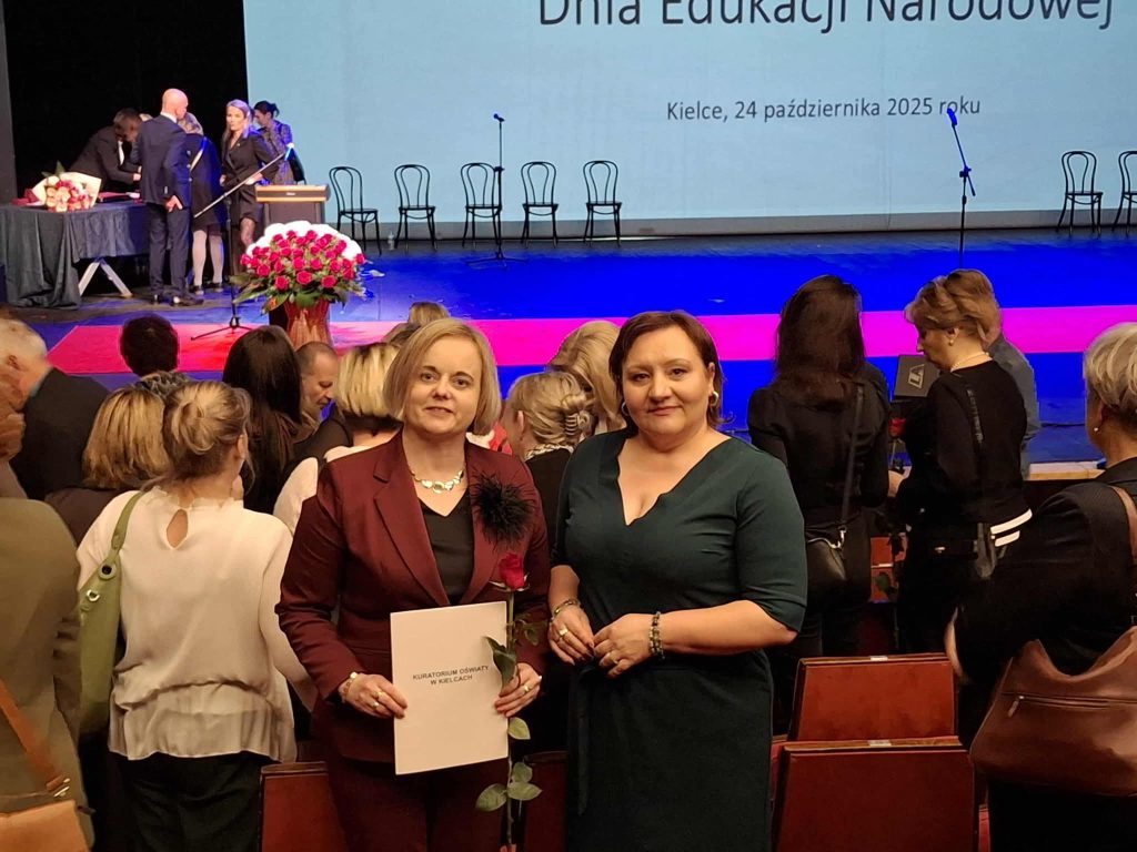 W dn. 24.10.25 r. w Kieleckim Centrum Kultury odbyły się Wojewódzkie Obchody Dnia Edukacji Narodowej. Miło nam poinformować, że pani Wioletta Banach – nauczycielka historii i wiedzy o społeczeństwie – otrzymała nagrodę Świętokrzyskiego Kuratora Oświaty za wybitne osiągniecia w pracy dydaktycznej, wychowawczej i opiekuńczej.