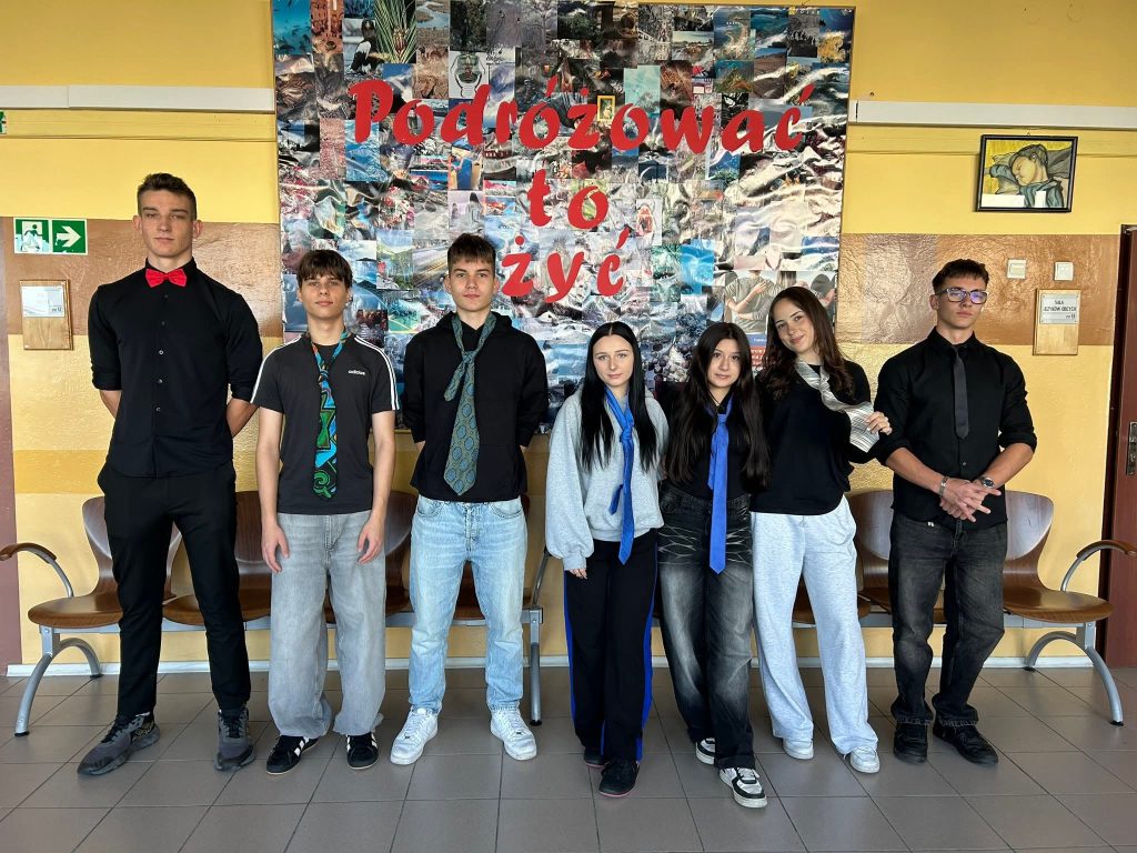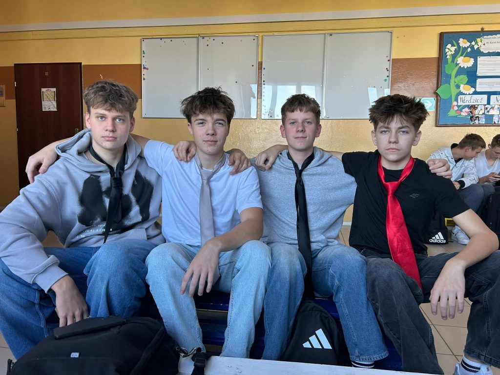 W dn. 23.10.25 r. w naszej szkole świętowaliśmy Światowy Dzień Krawata! Każdy, kto założył krawat, mógł cieszyć się dniem bez odpytywania – nic dziwnego, że pojawiły się one na szyjach większości uczniów, niezależnie od płci.