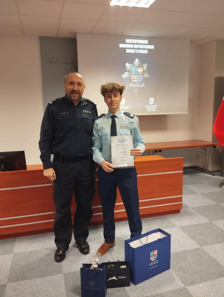 Z ogromną radością informujemy, że Filip Maciejczyk, ucz. kl. III LO o profilu policyjno-prawnym, zdobył II miejsce w Konkursie Historycznym Wiedzy o Policji! Organizatorem przedsięwzięcia była Komenda Wojewódzka Policji w Kielcach, przy partnerstwie Świętokrzyskiego Stowarzyszenia „Rodzina Policyjna 1939r.” Wydarzenie zostało objęte patronatami honorowymi Wojewody Świętokrzyskiego i Marszałka Województwa Świętokrzyskiego.