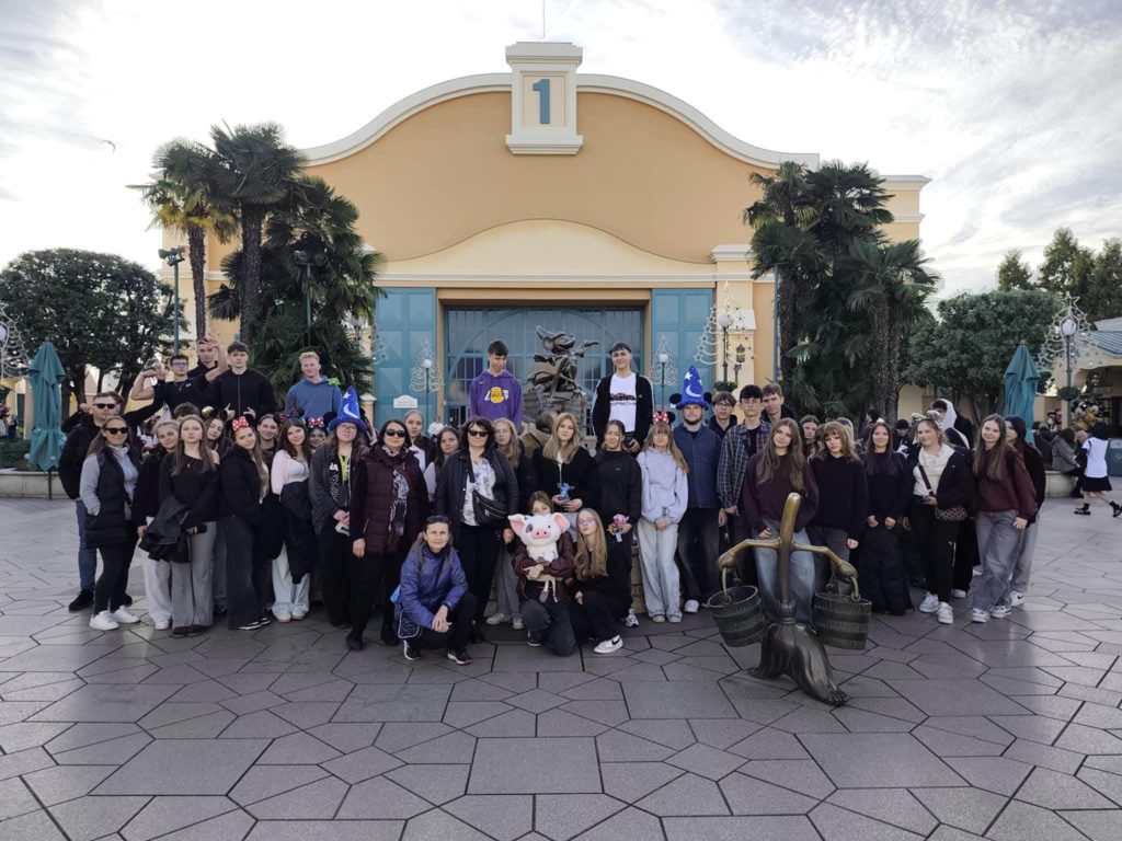 W dn. 03-07. 11. 2025 r. uczniowie naszej szkoły udali się na wycieczkę do Paryża. Rozpoczęli ją od pełnego magii dnia w największym parku rozrywki dla dzieci i dorosłych w Europie, czyli Disneyland Paris. Młodzież mogła skorzystać z rożnych atrakcji, umieszczonych w krainach: „Fantazja”, „Pogranicze”, „Przygoda” i „Wynalazki”. W tym wyjątkowym miejscu dorośli na nowo stają się dziećmi, a marzenia się spełniają!