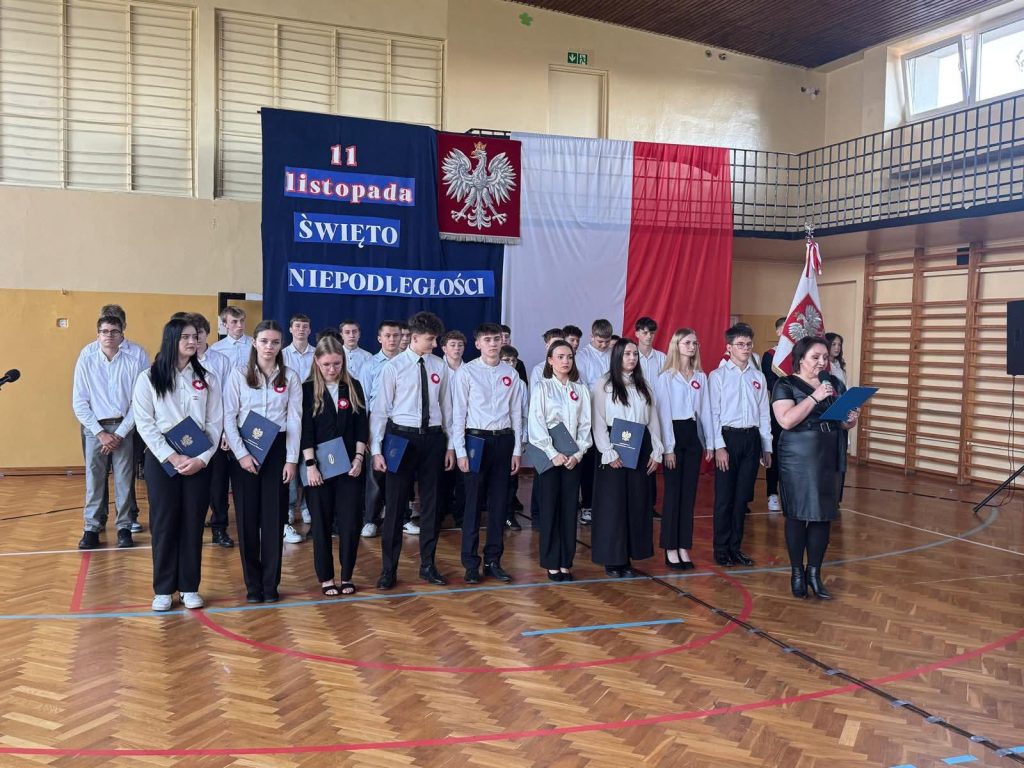 W dn. 07.11.25 r. w naszej szkole odbyła się akademia z okazji 107. rocznicy odzyskania przez Polskę niepodległości. W swoim wystąpieniu Dyrektor Szkoły, pani Mariola Koza podkreśliła wagę tego dnia jako święta narodowego, rocznicy odzyskania przez Polskę niepodległości.