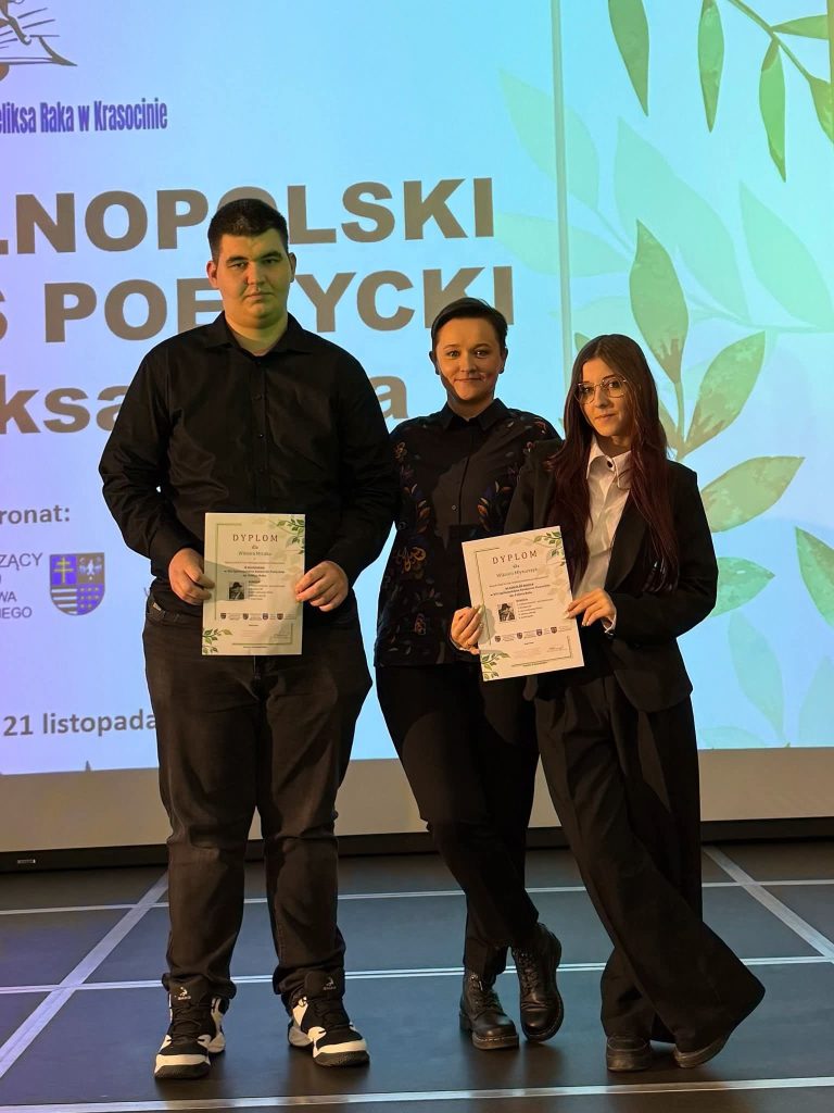 Sukces Wiktorii Młynarczyk (kl. 4 T IN) i Wiktora Mrożka (kl. 5 T IE) w XIX Ogólnopolskim Konkursie Poetyckim im. Feliksa Raka.