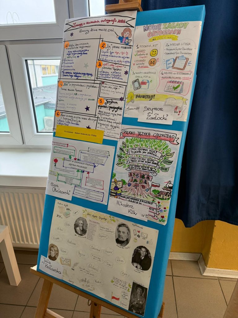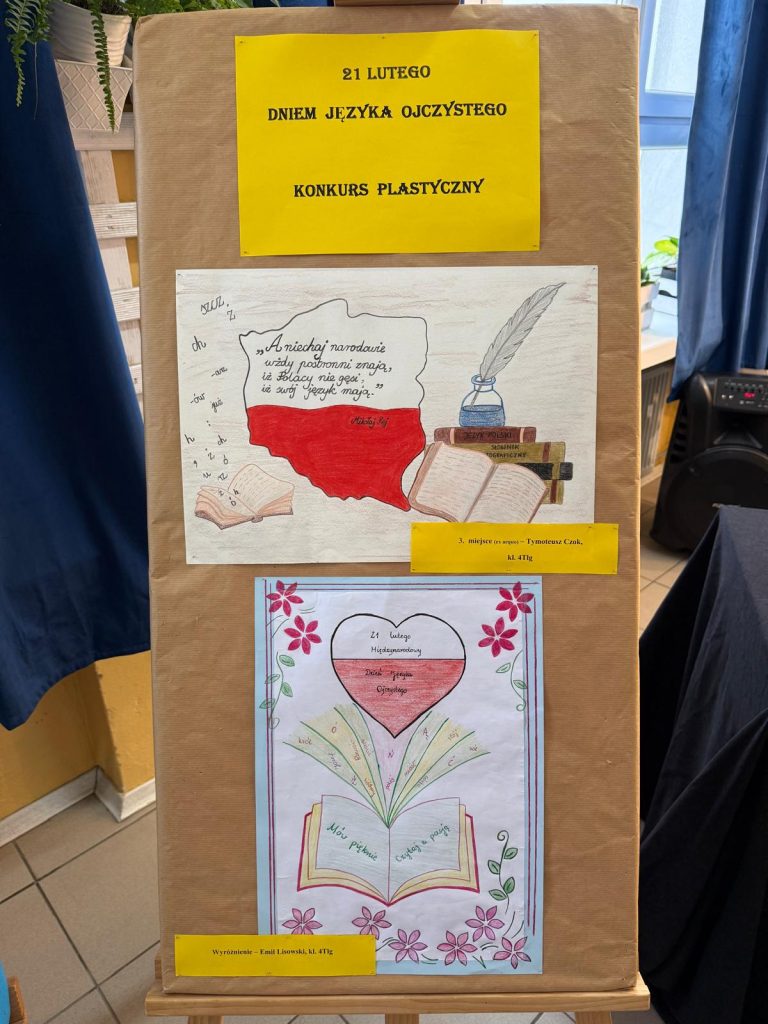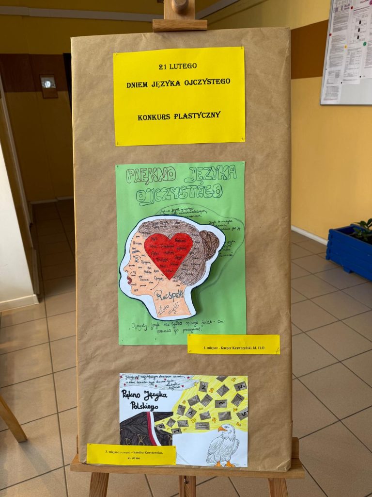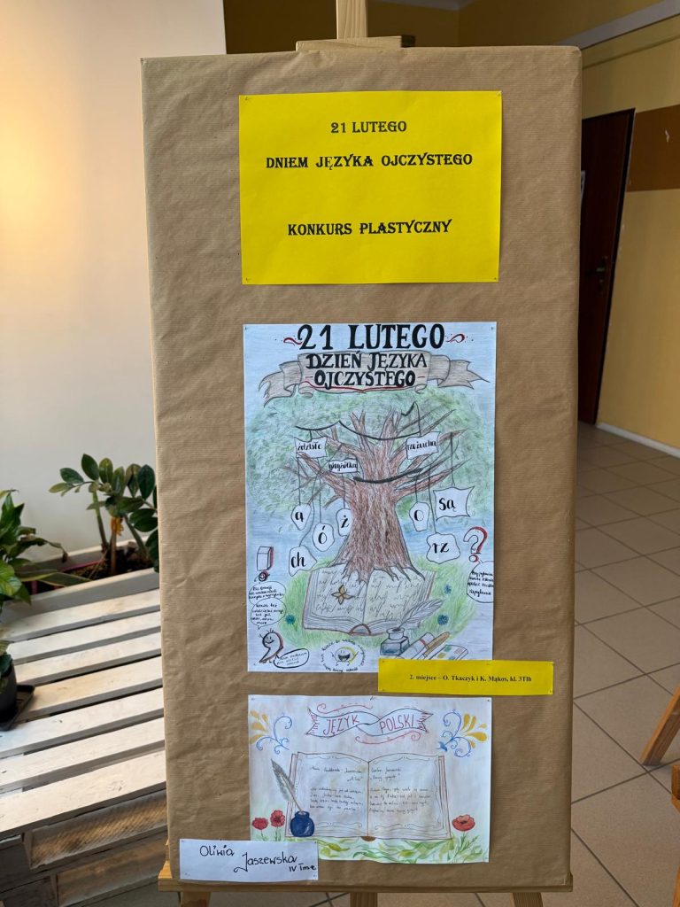Z okazji Międzynarodowego Dnia Języka Ojczystego nauczyciele języka polskiego przeprowadzili prelekcje na temat idei tego święta oraz o najnowszych zmianach w zasadach ortografii polskiej. Zostały również zorganizowane wewnątrzszkolne konkursy, które cieszyły się dużym zainteresowaniem naszej młodzieży: w dyktandzie ortograficznym wzięło udział 34 uczniów, a prace plastyczne przygotowało 36 osób!