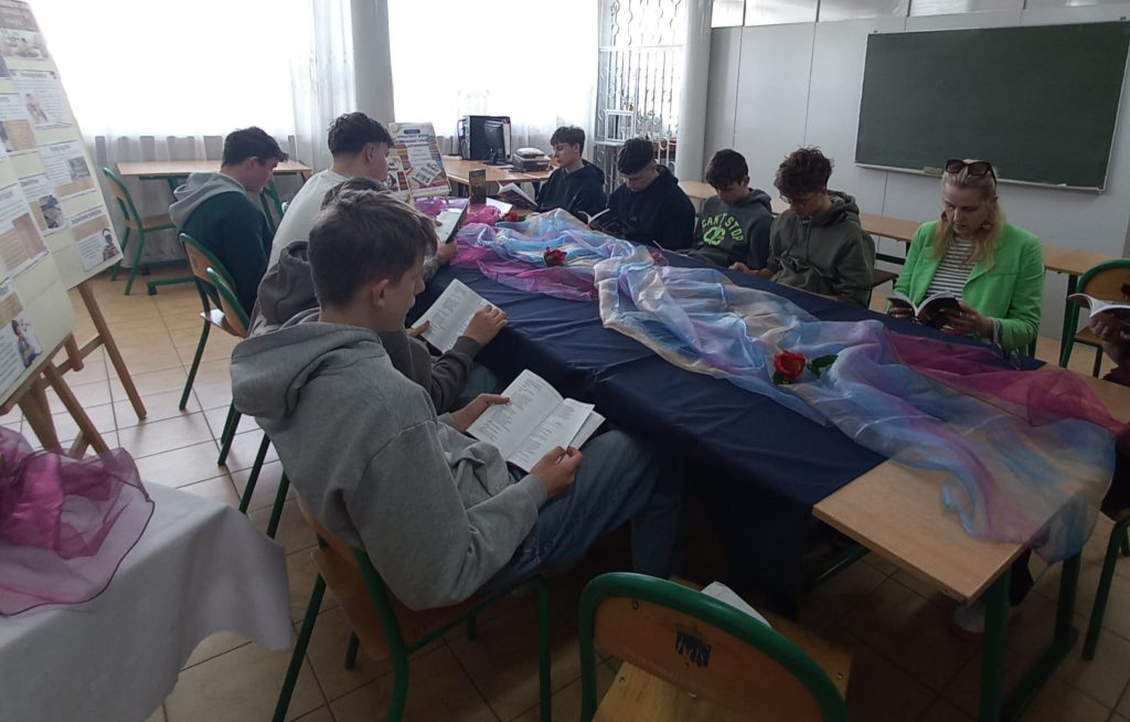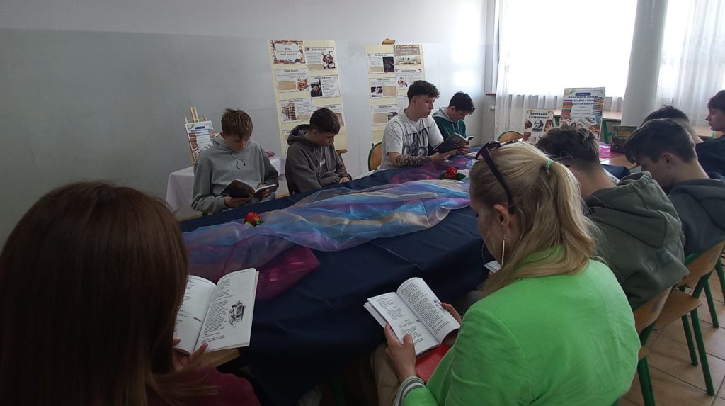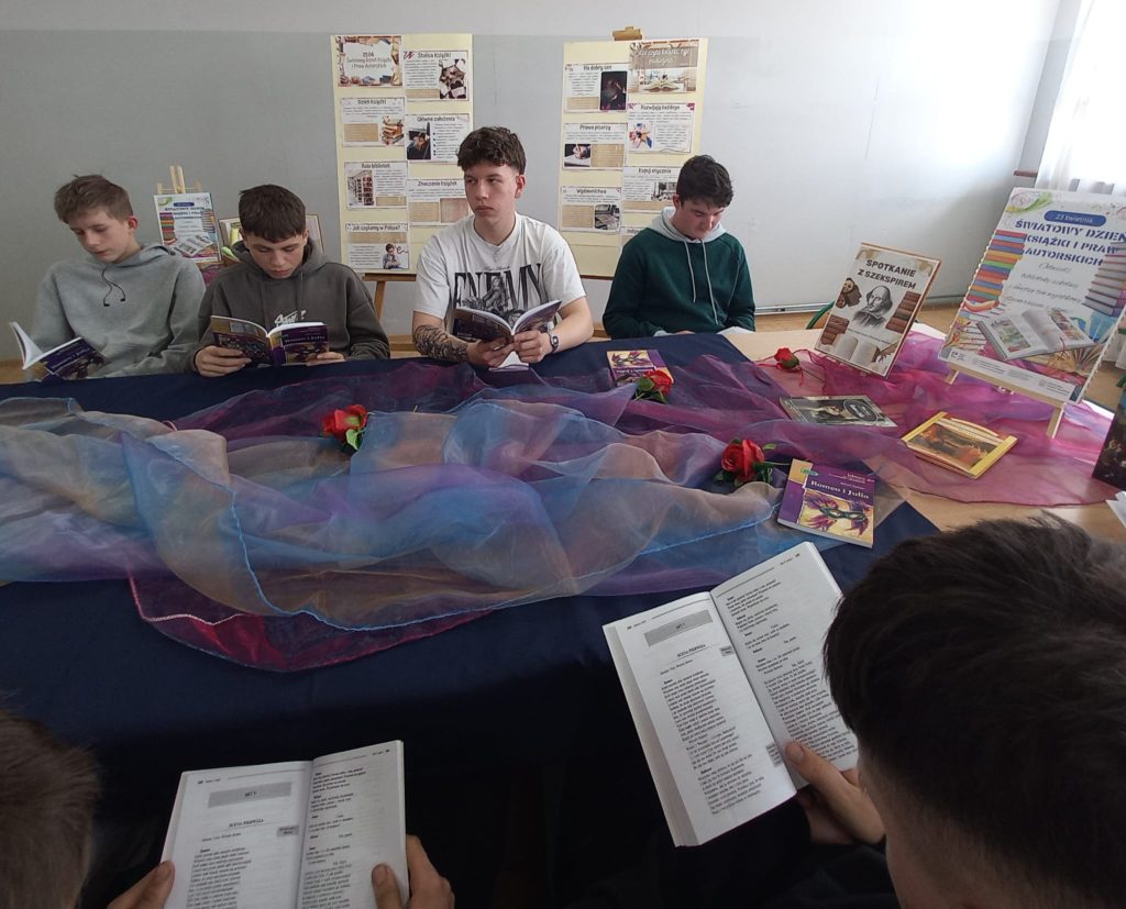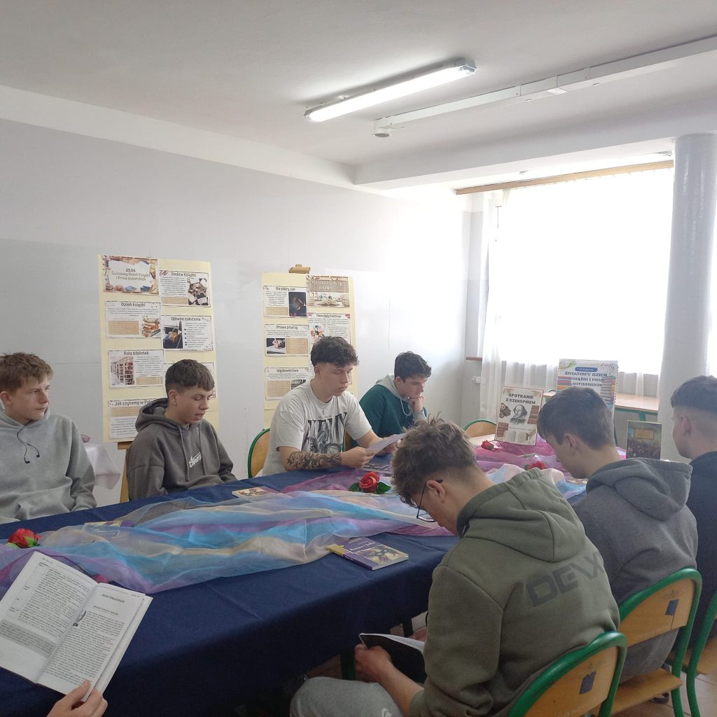 Tego dnia uczniowie mieli również okazję wziąć udział we wspólnym czytaniu wybranych dzieł Williama Shakespeare’a.W bibliotece rozbrzmiewały fragmenty takich utworów jak „Romeo i Julia”, „Makbet” oraz „Hamlet”. Spotkanie było nie tylko okazją do kontaktu z klasyką literatury światowej, ale także do refleksji nad ponadczasowymi wartościami i emocjami zawartymi w tych dziełach.
