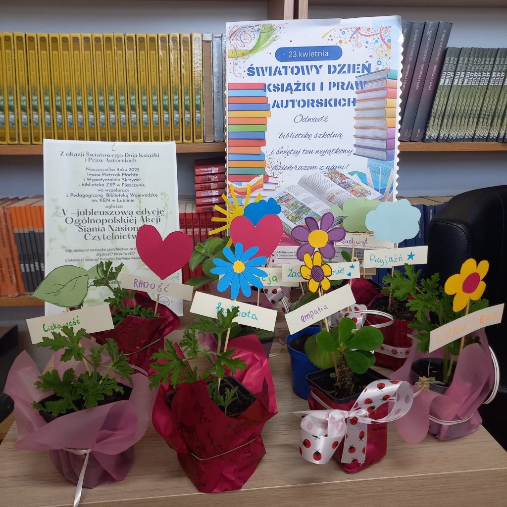 W dn.23 kwietnia 2026 roku w naszej bibliotece szkolnej odbyło się wyjątkowe wydarzenie z okazji Światowego Dnia Książki i Praw Autorskich. W ramach obchodów zorganizowano Ogólnopolską Akcję Siania Nasionek Czytelnictwa, której celem jest promowanie pasji do czytania wśród dzieci i młodzieży. Akcja ta promuje miłość do książek poprzez ekologiczne i twórcze działanie. Polega ona na symbolicznym sadzeniu nasion i roślinek w bibliotekach, co ma na celu pobudzenie wyobraźni, ciekawości świata oraz rozwijanie mądrości poprzez czytanie.