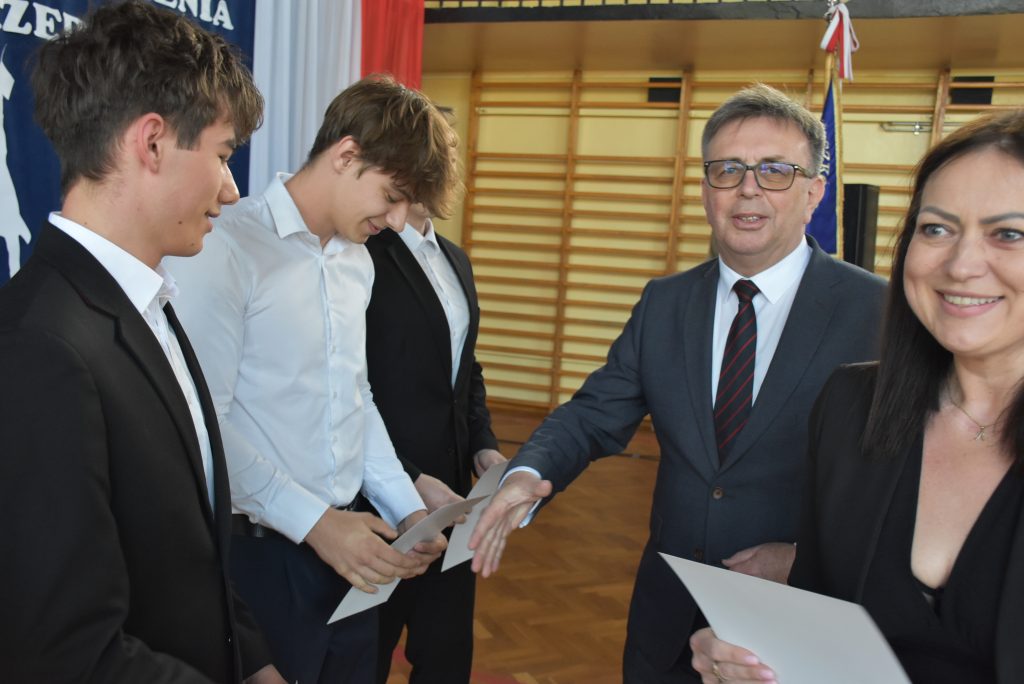 W tym szczególnym wydarzeniu uczestniczyli: Dyrektor Szkoły pani Mariola Koza, Wicedyrektor pani Anna Jamróz, Grono Pedagogiczne oraz zaproszeni goście, w tym Starosta Włoszczowski pan Dariusz Czechowski oraz przewodnicząca Rady Rodziców pani Agnieszka Kozieł. Na uroczystość przybyli również rodzice maturzystów oraz młodsi uczniowie.